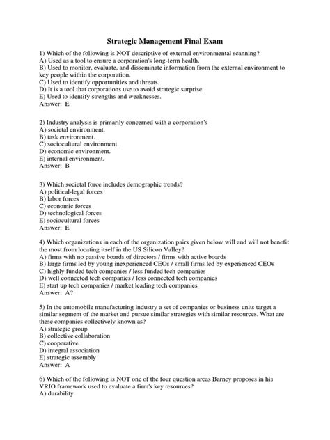 Free PDF STRATEGIC MANAGEMENT FINAL EXAM Hardcover Internet Archive